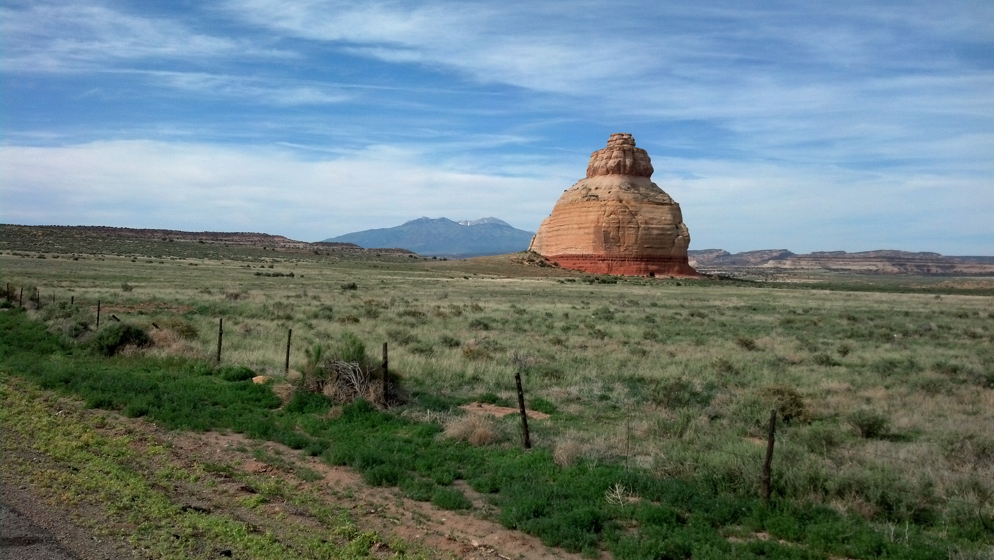 Like the previous day, this was a fairly long, ultimately difficult and tiring ride. We rode through a bit of Colorado and a lot of Utah, stopping for lunch in Moab. The wonderful part of it was seeing some beautiful areas, including the sight below, which is just off US 191 near Newspaper Rock.