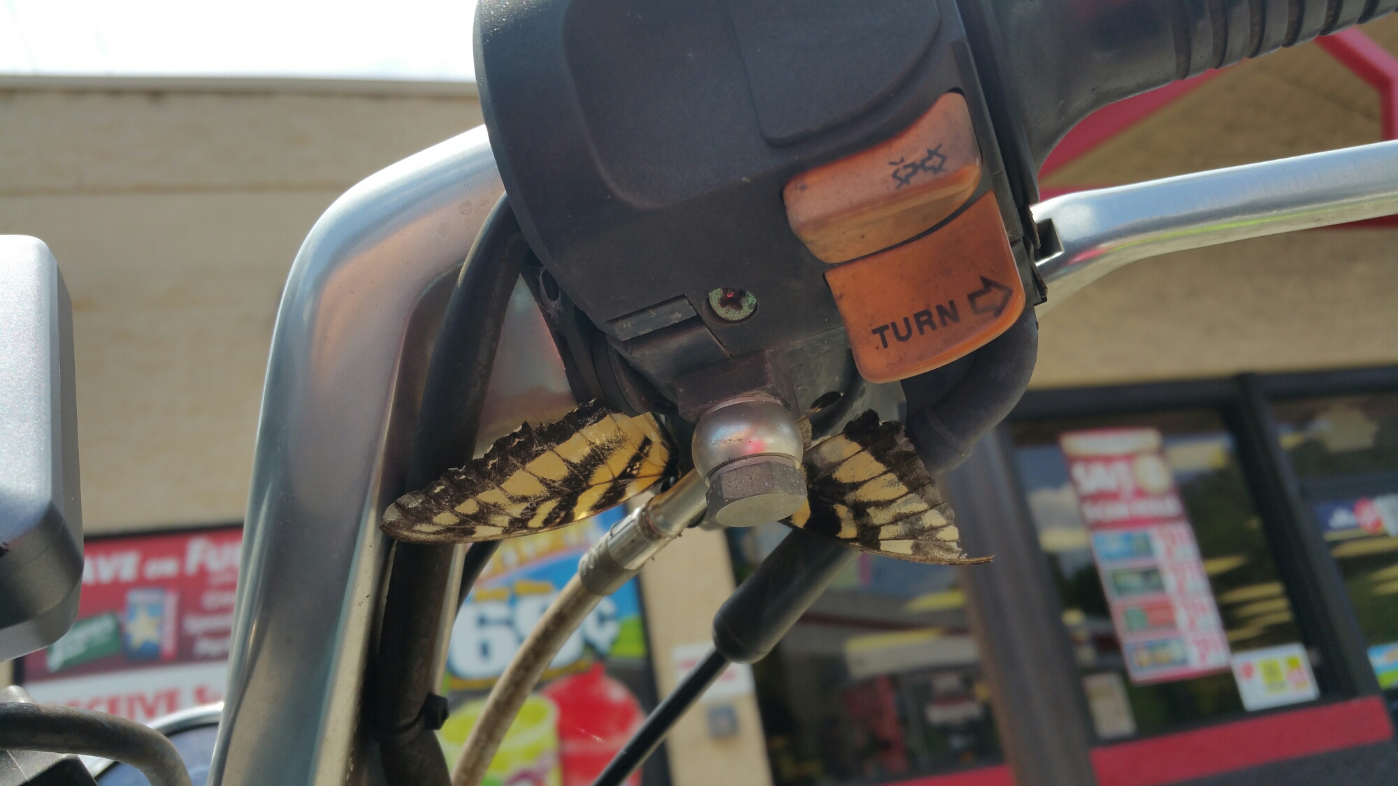 At one point I picked up a hitchhiker – a butterfly got stuck against my brake control. Surprisingly it was fine and fluttered away after an hour of being stuck there while I rode.