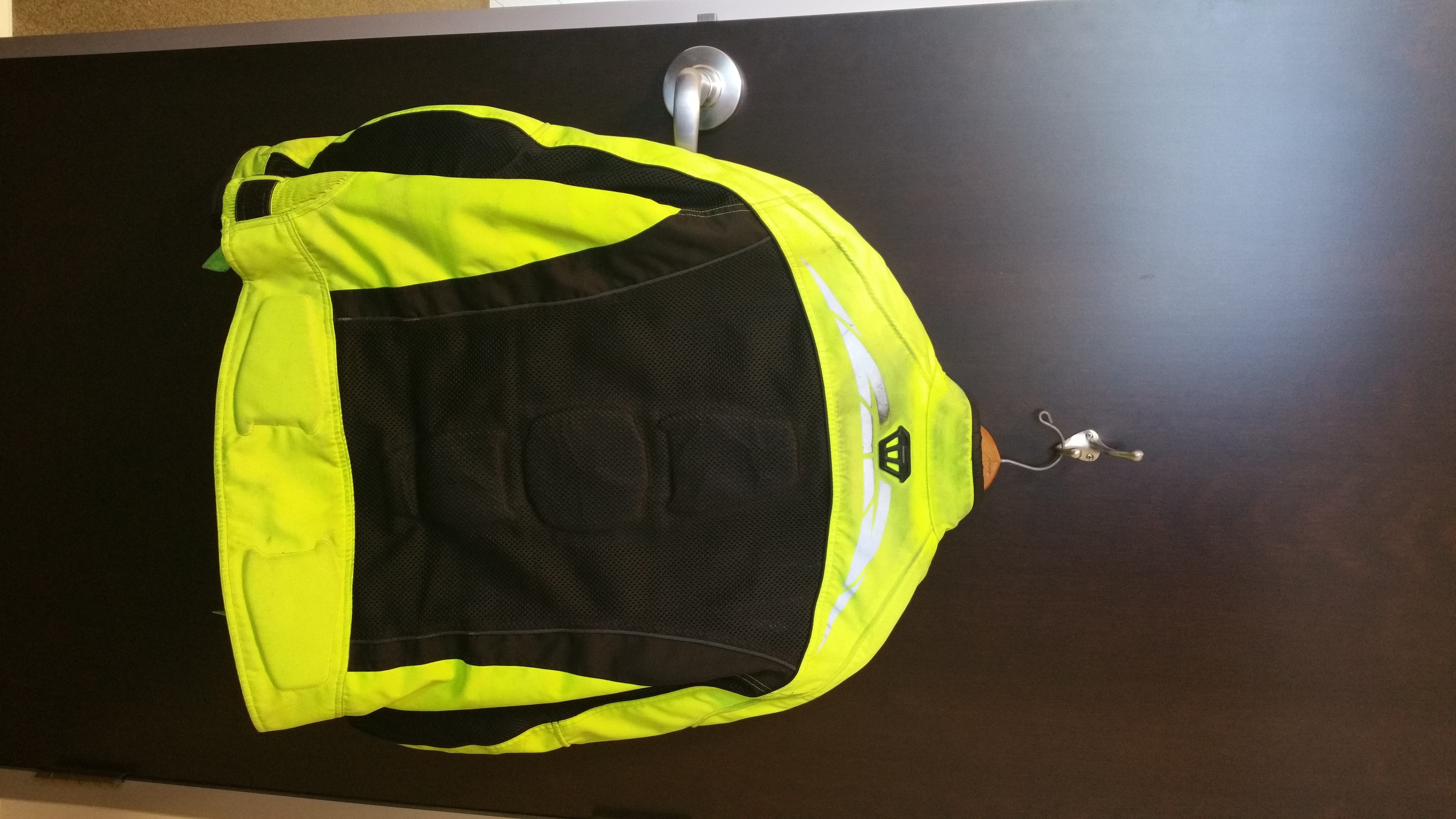 I picked this jacket up at a BMW dealer in the state back in March as my then current pair, one textile and one mesh, were worn out. It’s a mesh jacket (the black areas are the mesh) which comes with two liners, one waterproof and one insulated, and can be nested.