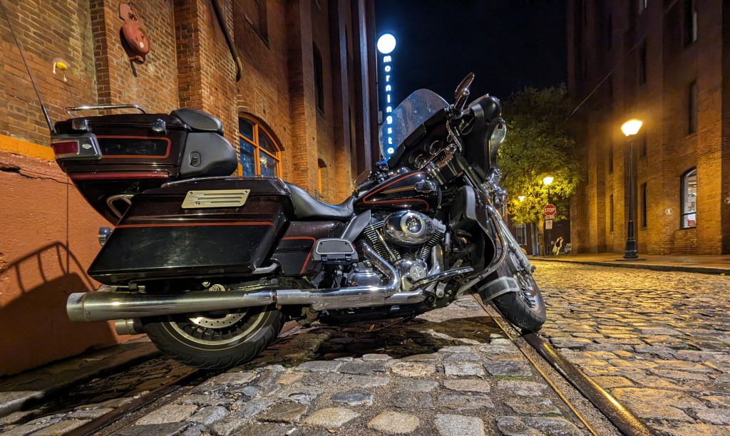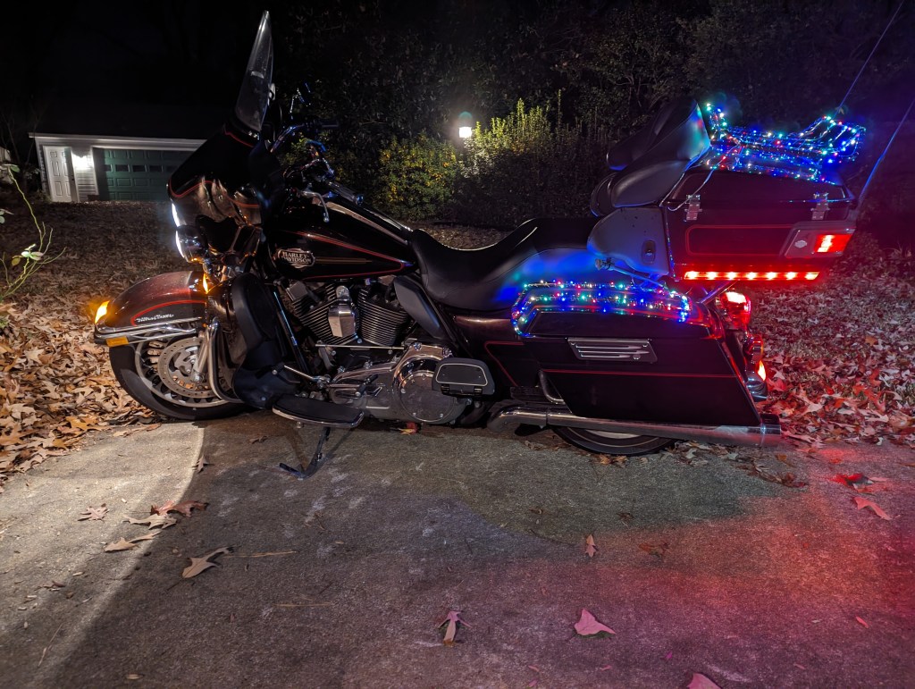 Selfie during warmer days.Made a stop in Shockoe Bottom, Richmond, Virginia, USA. The tracks are obviously long out of use.In mid-December there was a Christmas House event in Poquoson, Virginia, with Santa arriving on a firetruck with motorcycles leading the way. I decided to make mine a little festive.